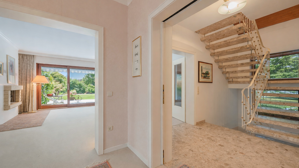 Das im Jahr 1980 in massiver Bauweise errichtete Einfamilienhaus steht auf einem ca. 781 m² großen Grundstück und überzeugt durch seine mittige Bebauung, die eine ausgewogene Aufteilung der Außenflächen ermöglicht. Der Garten teilt sich in zwei geschützte Bereiche: Ein nach Westen ausgerichteter, nicht einsehbarer Garten mit Terrasse lädt zu entspannten Stunden im Freien ein. Eine Markise sorgt für Schatten, während ein Gartenhaus zusätzlichen Stauraum bietet. Der eingewachsene Vorgarten mit Südost-Ausrichtung bietet einen ruhigen Platz für die Morgensonne und dient gleichzeitig als natürlicher Sichtschutz. Das Haus ist voll unterkellert und verfügt über viel Stauraum sowie einen separaten Außenzugang zum Keller. Beheizt wird die Immobilie über eine Viessmann-Gastherme aus dem Jahr 2007. Holzfenster mit Doppelverglasung sind vorhanden, einige wurden 2006 erneuert. Manuelle und teilweise elektrische Rollläden sorgen für zusätzlichen Komfort. Zwei Außenstellplätze auf dem Grundstück ermöglichen bequemes Parken direkt am Haus.