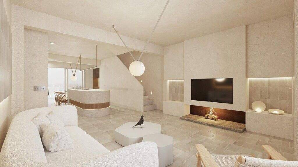 Das Haus erstreckt sich ?ber drei Etagen mit einem offenen Erdgeschoss, in dem ein Wohnzimmer, ein Essbereich und eine ma?geschneiderte Einbauk?che untergebracht sind, die einen funktionalen Raum f?r den wichtigsten sozialen Mittelpunkt bilden. Von hier aus haben Sie Zugang zur Terrasse und zum kleinen Pool.