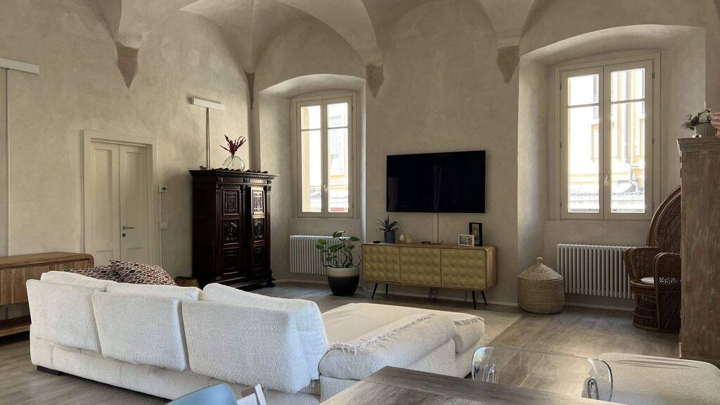Diese schöne Garten-Luxus-Wohnung mit Terrasse befindet sich im Zentrum von Porto Valtravaglia, ca. 4 km südlich von Luino, in einem historischen Palazzo mit nur 9 Wohnungen. Der Strand und Restaurants sind in unmittelbarer Nähe und alle Dienstleistungen sind problemlos zu Fuß erreichbar. Die Wohnung bietet eine Wohnnutzfläche von ca. 152 qm und ist wie folgt aufgeteilt: großer und heller Wohn/-Essbereich mit Gewölbedecke und Ausgang in den Garten, offene und moderne Designer-Küche, 2 Schlafzimmer mit 2 en-suite Badezimmern, sowie einen Abstellraum / Waschküche. Der große Gemeinschaftspool, diverse Gemeinschafterrassen, ein Autoabstellplatz und ein Keller runden dieses Angebot ab.
