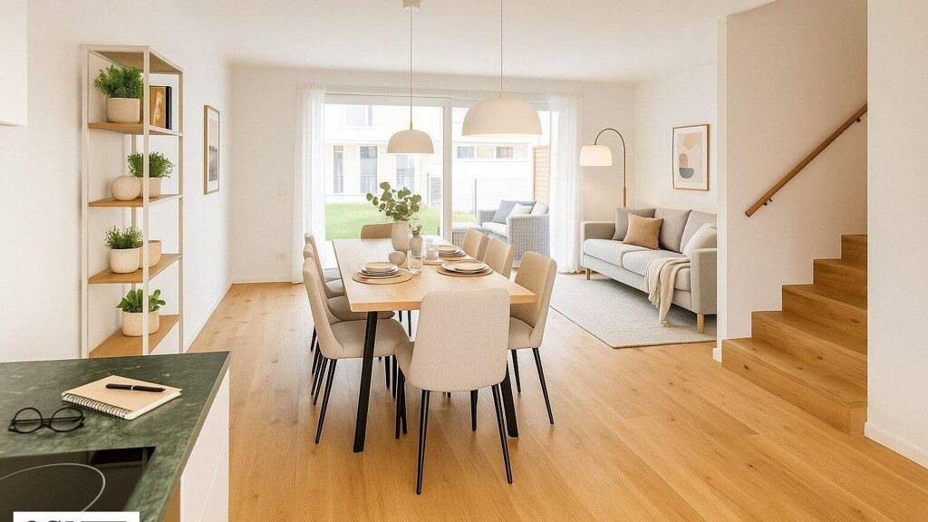 Dieses moderne Townhouse verfügt über 5 Zimmer und rund 133 m² Wohnfläche zzgl. rund 24 m² Terrassenfläche sowie zzgl. rund 52 m² Gartenfläche. Sie besticht durch ihren großzügigen Grundriss und teilt sich wie folgt auf: