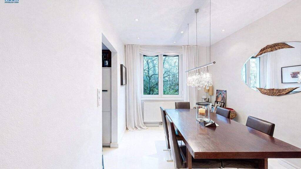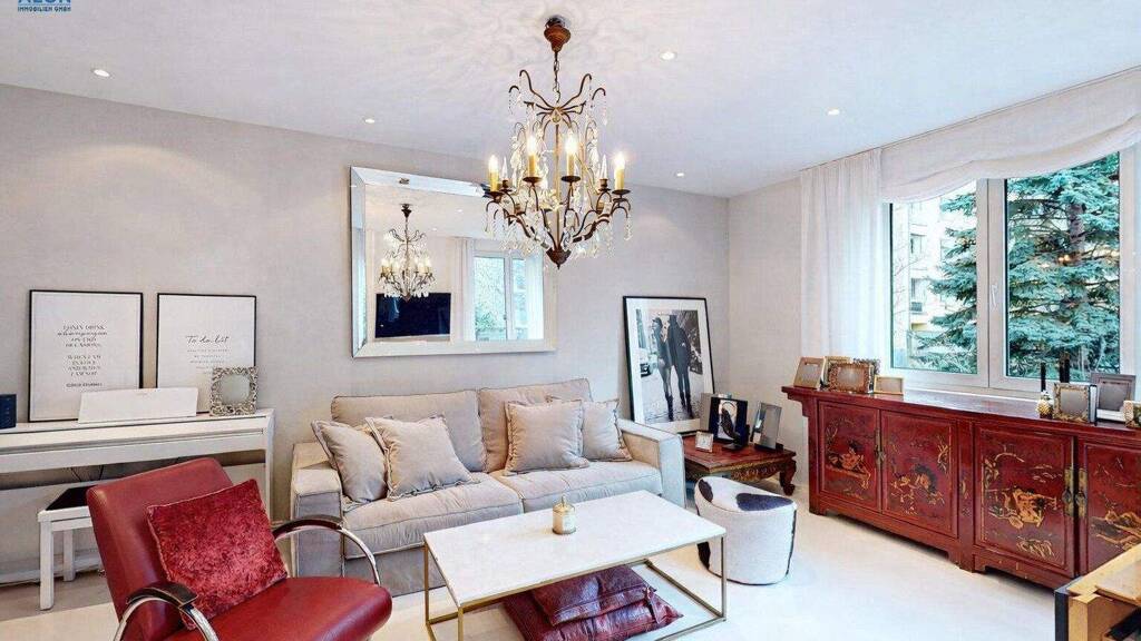 Die Wohnung präsentiert sich als harmonisches Zusammenspiel aus modernem Wohnen und klassischem Design. Großzügige Fensterflächen, helle Räume und ausgewählte Designer-Elemente schaffen eine Atmosphäre von Ruhe, Komfort und Exklusivität.