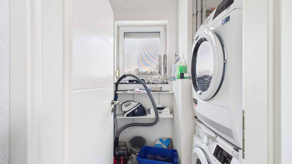 Ein praktischer Abstellraum, ausgestattet mit einem Waschmaschinenanschluss, bietet wertvollen Stauraum und rundet das Raumangebot optimal ab.