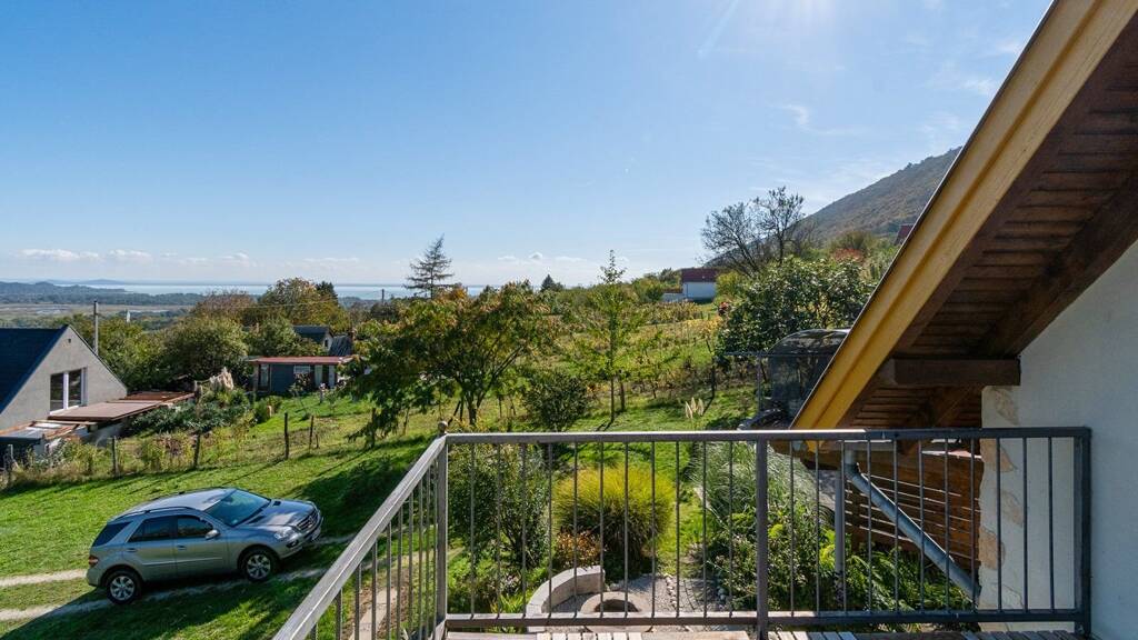 Zusätzlich überzeugt das Anwesen mit einem Balkon, der den Panoramablick zusätzlich verstärkt. Hier können Sie die atemberaubenden Sonnenuntergänge über dem Balaton in vollen Zügen genießen.