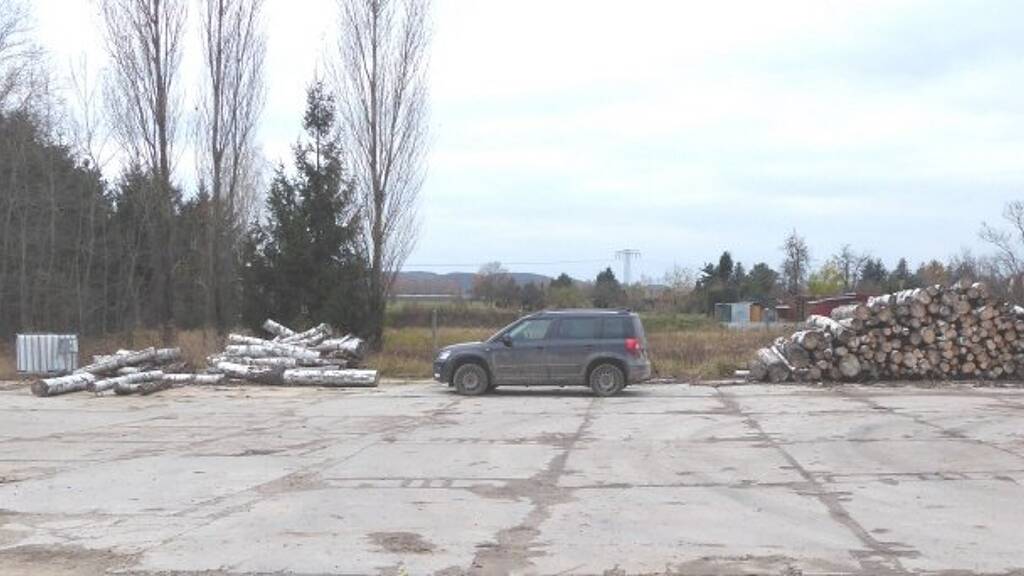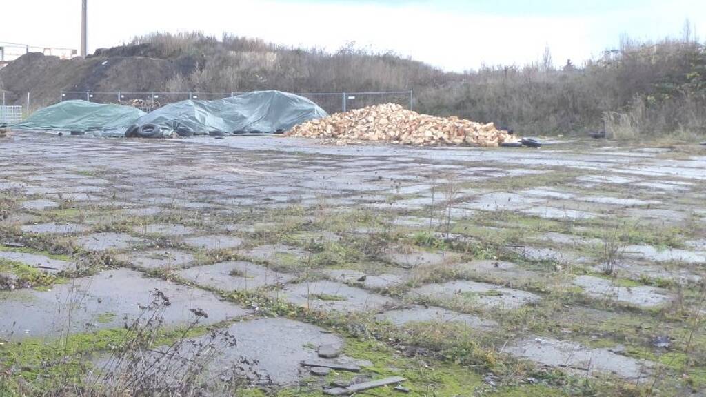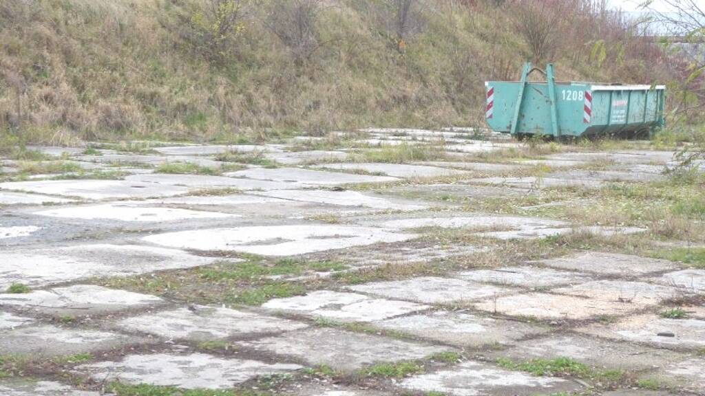 Zum Großteil ist die Fläche mit Betonplatten befestigt und umzäunt.