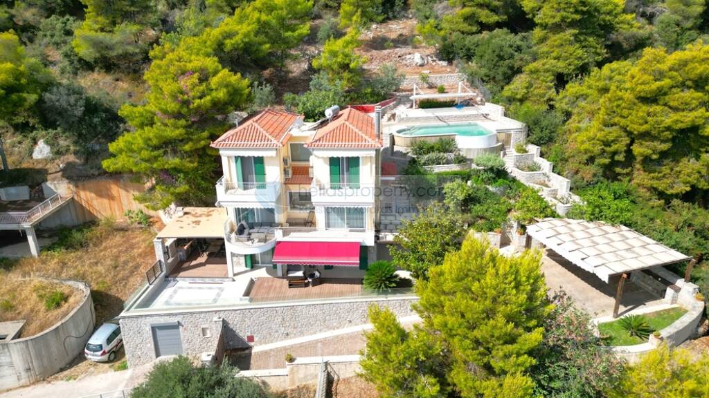 Zu Fuß von Strand 100 Meter entfernt, ein sanfter Berghang lässt ungehinderten den Panoramablick auf das Meer genießen, sowie die Stadt von Epidaurus und die Saronischen Inseln.