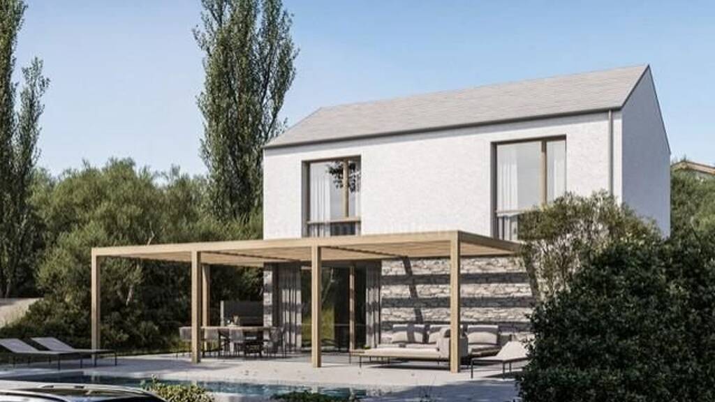 Das Haus erstreckt sich über zwei Etagen und hat eine Gesamtfläche von 115 m2 und befindet sich derzeit im Bau. Der geplante Abschluss der Arbeiten ist Oktober 2023. Es wird auf einem Grundstück von 442 m2 gebaut. Es wird ein wunderschön dekoriertes Interieur mit Elementen des traditionellen Designs haben. Im Erdgeschoss wird es einen offenen Raum geben, ein geräumiges Wohnzimmer, ein Esszimmer und eine Küche sowie einen Ausgang zur Terrasse und zum Garten, wo sich ein großer Überlaufpool befinden wird. Im Obergeschoss befinden sich zwei Schlafzimmer mit jeweils eigenem Bad. Das Haus wird über Fußbodenheizung, Klimaanlage, hochwertige Holztischlerei und Balkontüren verfügen. Es befindet sich in einer großartigen Lage, nur 300 Meter vom Meer entfernt und in der Nähe von Annehmlichkeiten. Der angegebene Preis bezieht sich auf die Rohbauphase.