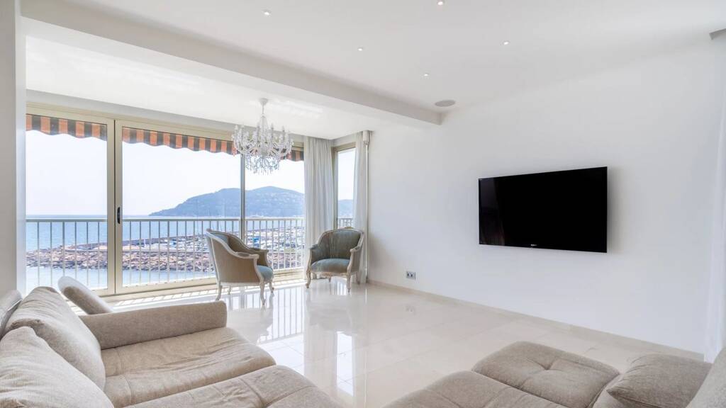 Located in one of Mandelieu's most prestigious waterfront residences, this exceptional two-bedroom apartment offers a rare opportunity to experience luxury living by the sea, with uninterrupted panoramic views of the Mediterranean, the marina, and the majestic Esterel hills.