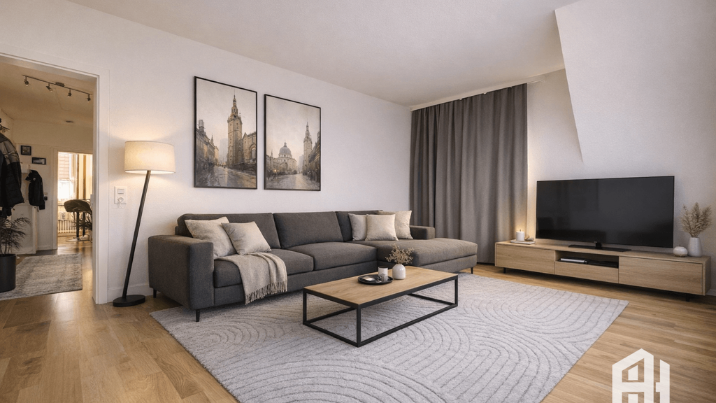 Unter Berücksichtigung der Privatsphäre der Mieter wurden die Möbel auf den Bildern durch KI-Möbel ersetzt.