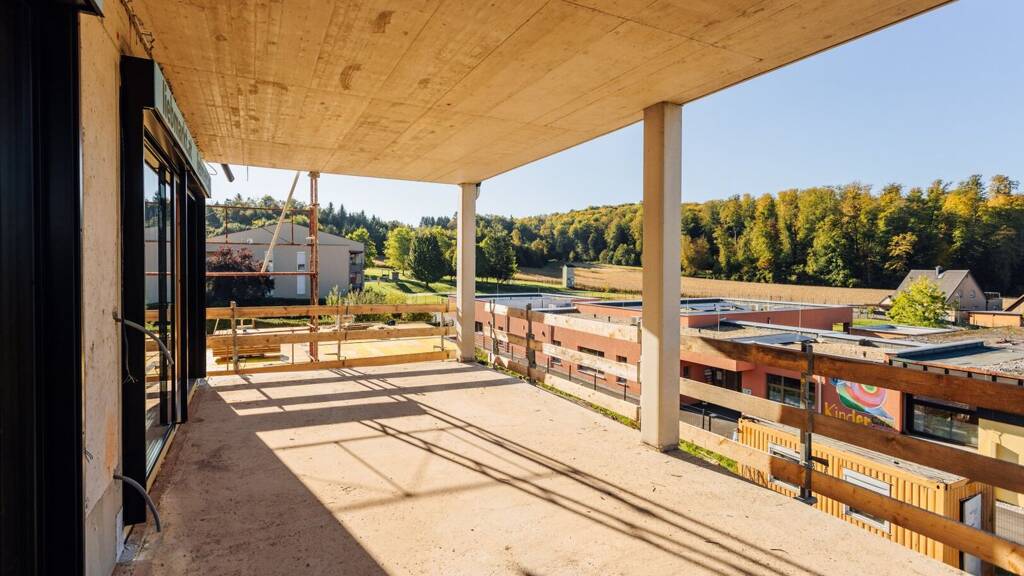 Vorraum, Abstellraum, Badezimmer mit ebenerdiger Dusche, ein separates WC, zwei getrennt begehbare Zimmer, ein herrlicher offener über 41m² großer Wohn-/Essbereich mit ausreichend Platz für die Küche, sowie eine rund 18m² Terrasse die barrierefrei den Innen- und Außenbereich verbindet.