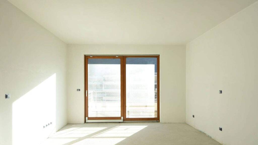 Die Vierzimmerwohnung im sechste Stock besteht aus einem Eingangsbereich, einem großen Wohnzimmer mit Essbereich und direktem Zugang zur großzügigen Terrasse, die sich perfekt für entspannte Momente im Freien eignet, einer Wohnküche, einem praktischen Abstellraum sowie einem Flur, der in den Schlafbereich führt. Dieser umfasst ein geräumiges Doppelzimmer mit kleinem Balkon und zwei gut geschnittene Einzelzimmer, die beide Zugang zur Hauptterrasse haben.