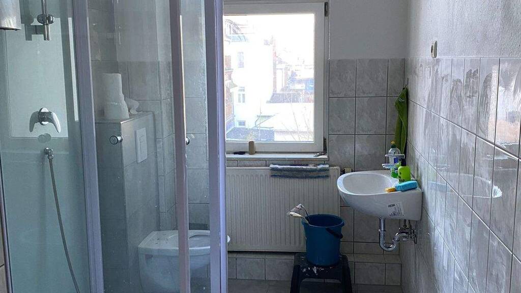 Die Wohnung begeht man durch einen geräumigen, gepflegten, hell gestalteten Hausflur. Vom Wohnungsflur kann man Bad, Küche, und Wohnzimmer begehen, das Schlafzimmer/Kinderzimmer liegt "hinter" der Küche. Das Bad verfügt über eine neue Dusche, alle Räume haben ein Fenster, außer das Wohnzimmer hat zwei große Fenster mit Blick über die Dächer der Stadt.