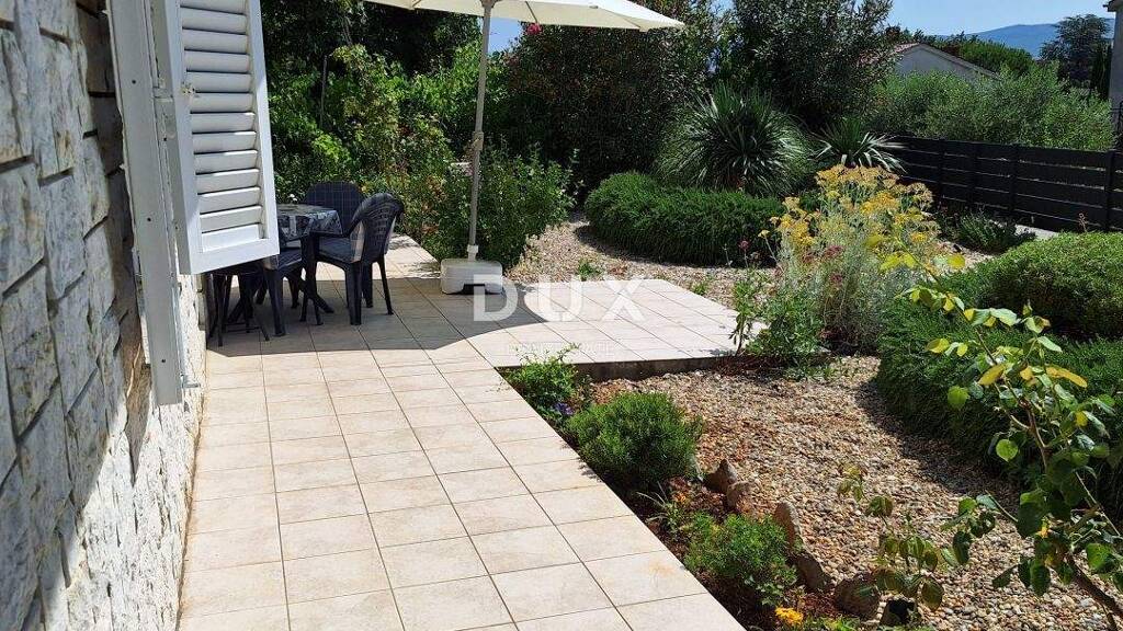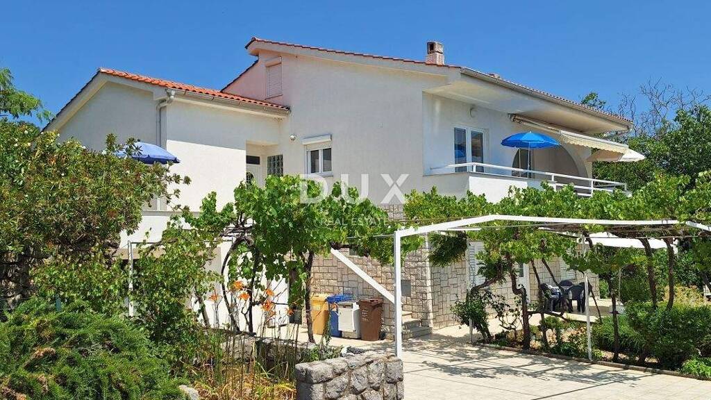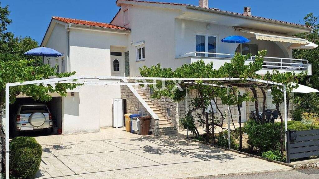 Das freistehende Haus liegt 400 m vom Zentrum der Stadt Krk und 600 m vom ersten Strand entfernt. Es ist von Villen und Ferienhäusern in ruhiger Umgebung umgeben. 279 m2 Wohnfläche und 500 m2 Garten. Das Haus wurde 1984 erbaut, wobei neben der Bauqualität auch die Funktionalität und Modularität des Gebäudes selbst berücksichtigt wurden. Die Renovierung erfolgte 2012, als eine neue Fassade und ein neues Dach installiert wurden. Die Fenster und Türen sind aus PVC mit Fensterläden. Das Haus verfügt über drei separate Wohneinheiten, von denen sich zwei im Erdgeschoss befinden und eine die gesamte Etage mit teilweisem Meerblick einnimmt. Das Erdgeschoss besteht aus einem Studio-Apartment mit Außenterrasse und einem Apartment mit zwei Schlafzimmern und einem großen Wohnbereich, der mit der Terrasse und der Taverne verbunden ist. Der erste Stock besteht aus einem Flur, der den Wohnbereich mit einer Terrasse mit teilweisem Meerblick verbindet, und drei Schlafzimmern, von denen eines über ein eigenes Bad und das andere über eine eigene Terrasse verfügt. Einfamilienhaus mit großem Vermietungspotenzial aufgrund seiner Architektur und Lage.