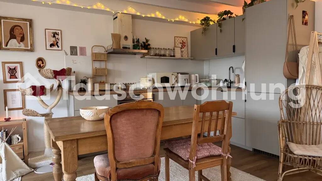 Es handelt es sich hierbei um ein Tauschangebot. (Anbieter-ID: 431995) Ich biete meine gemütliche 1-Zimmer-Dachgeschoss-Wohnung mit ca. 50 m² in der Kölner Innenstadt (direkt an der Ehrenstraße & dem Friesenplatz) an. Die Warmmiete beträgt 1200€ aber beinhaltet bereits WiFi (somit kann man sich die Kosten eines eigenes Vertrags sparen), Heizkosten, eine neue Einbauküche von 2025 und die Nutzung der gemeinsamen Waschmaschine und des Trockners.