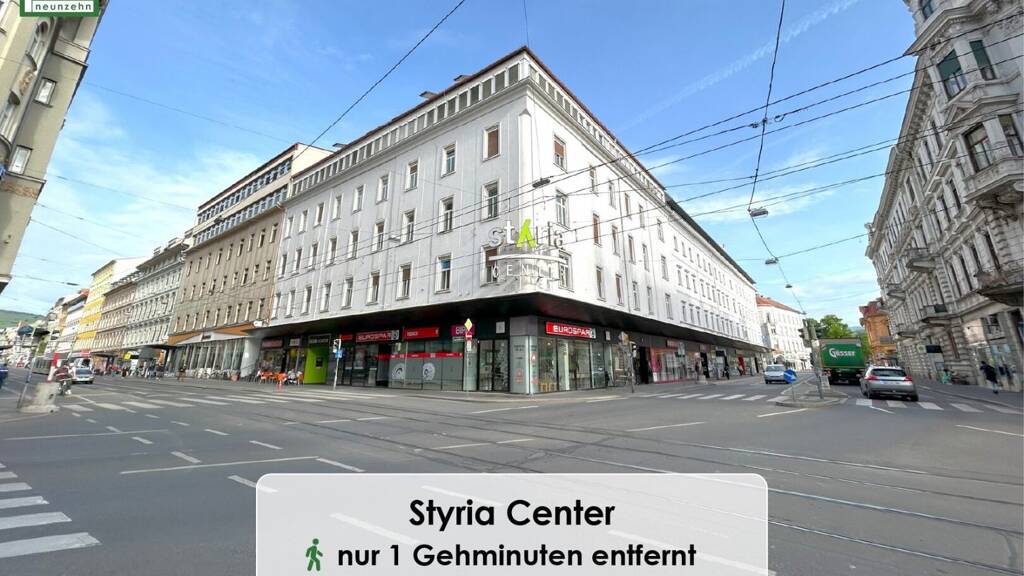 In unmittelbarer Nähe finden Sie alles, was Sie zum Wohlfühlen benötigen: Einkaufsgelegenheiten, Ärzte und Behörden sind nur einen kurzen Spaziergang entfernt. Das Styria Center liegt direkt vor der Tür und ermöglicht Ihnen ein bequemes Shopping-Erlebnis. Die öffentlichen Verkehrsmittel sind direkt vor der Eingangstür zu finden, was Ihnen eine optimale Anbindung an die gesamte Stadt bietet. Der liebevoll gestaltete Innenhof ist Ihr persönlicher Rückzugsort, ideal zum Entspannen und Abschalten vom pulsierenden Stadtleben.