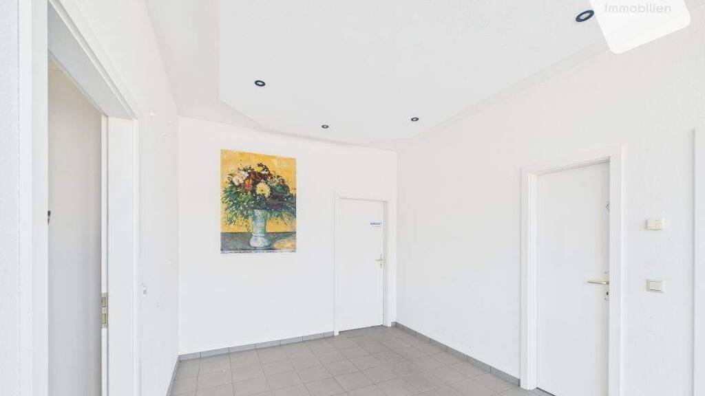 Die Immobilie verfügt aktuell über mehrere Hallenflächen im hinteren Bereich. Zwei Büros, Aufenthalts- und Lagermöglichkeiten finden sich im vorderen Teil des Gebäudes. Ein Rolltor mit Überdachung im Mittelteil der Halle erleichtert die Anlieferung und sorgt für witterungsgeschützte Arbeitsprozesse. Die im hinteren Bereich vorhandenen - teilweise in Trockenbauweise errichteten - Innenwände ermöglichen eine flexible Raumgestaltung und können bei Bedarf unkompliziert entfernt werden, um eine größere, zusammenhängende Hallenfläche zu schaffen.