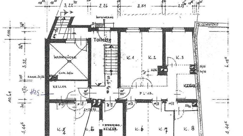 * Zum Verkauf steht ein Wohn- und Geschäftshaus in unmittelbarer Nähe des Nürnberger Rathauses * Das Gebäude besteht aus 8 Wohneinheiten und 2 Ladeneinheiten * Die Ladeneinheiten werden derzeit von einem Schnellimbiss- und einem Kioskbetreiber unterhalten * Der Mietvertrag für den Kiosk wurde 2021, der für den Imbiss 2023 abgeschlossen * Von den 8 Wohneinheiten stehen 5 Wohneinheiten leer * Die beiden Wohneinheiten im 3. OG werden von einer Person bewohnt, ebenso das 1-Zimmerapartment im Dachgeschoss * Die Wohnungen vom 1. OG bis zum 3. OG verfügen alle über einen Balkon, die beiden Dachgeschosswohnungen haben keinen Balkon * Der Dachboden steht derzeit leer und kann als Ausbaureserve genutzt werden * Zu jeder Wohnung gehört ein Kellerabteil * 2022 wurde eine Gaszentralheizung eingebaut, an die die beiden Ladeneinheiten sowie eine Wohnung im 1. OG angeschlossen sind * Die neue Heizung wurde so ausgelegt, dass das gesamte Haus nach und nach angeschlossen werden kann * 2024 wurde der Abwasserstrang links gereinigt * 2021 wurde der Kioskladen für ca. EUR 60.000,- komplett saniert