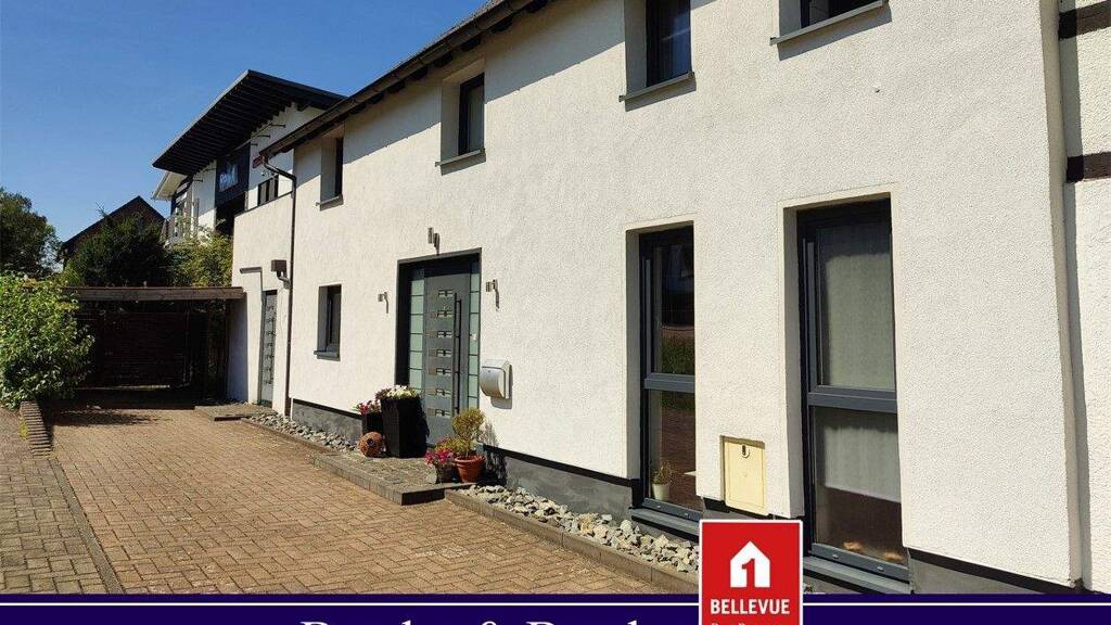 2014 wurde das ehemalige Wirtschaftsgebäude eines angrenzenden Bauernhauses zu einer Doppelhaushälfte stilvoll umgebaut. Dieser linke Gebäudeteil ist nicht unterkellert. Die Doppelhaushälfte verfügt über ca. 188 m² Wohnfläche. Das Erdgeschoss ist offen gestaltet und bietet teilweise unverputzte Betondecken im Industrial Style. Auch der Rest des Hauses wurde geschmackvoll und modern hergerichtet. Vom Wohn- bzw. Esszimmer gelangt man auf eine riesige Außenterrasse und in den liebevoll angelegten Garten mit Gartenteich. Die Diele bietet einen freien Blick in die Galerie im OG. Beim Umbau wurde auf eine energieeffiziente Gestaltung geachtet. So wurden z.B. die Außenwände im EG mit einer zweiten Mauer und im EG und OG mit einer zusätzlichen Außendämmung versehen. Im Dach wurde der Dachboden gedämmt. Die Immobilie ist besonders für eine Familie mit Kindern und Käufer geeignet, die gerne im Grünen und dennoch in der Nähe der Kreisstadt wohnen wollen.