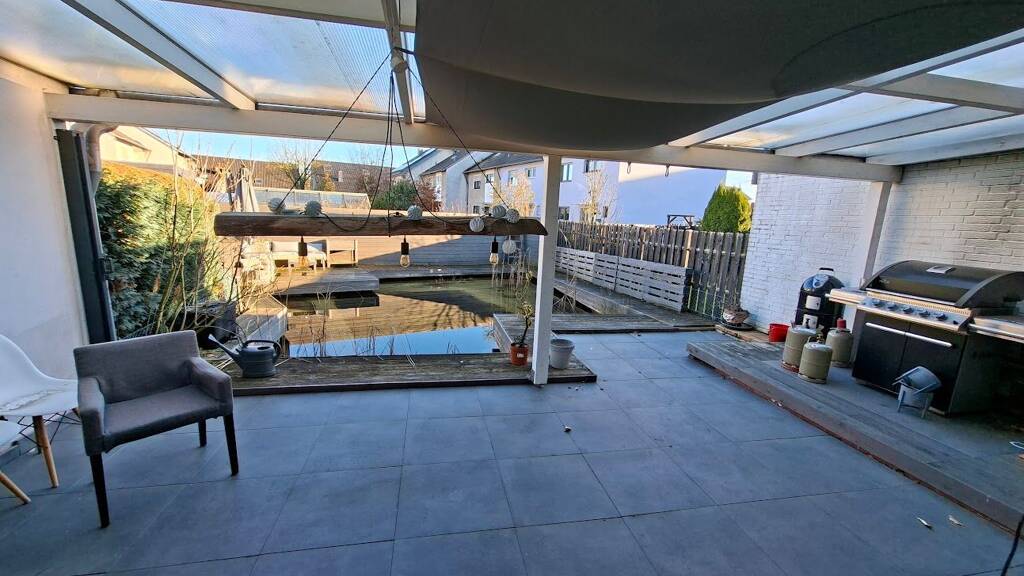 Der Garten ist ein echtes Highlight: Ein großer Teich, der auch als Schwimmbad genutzt werden kann, sorgt für besondere Lebensqualität. Das Haus ist zudem vollständig unterkellert und bietet damit reichlich Stauraum.