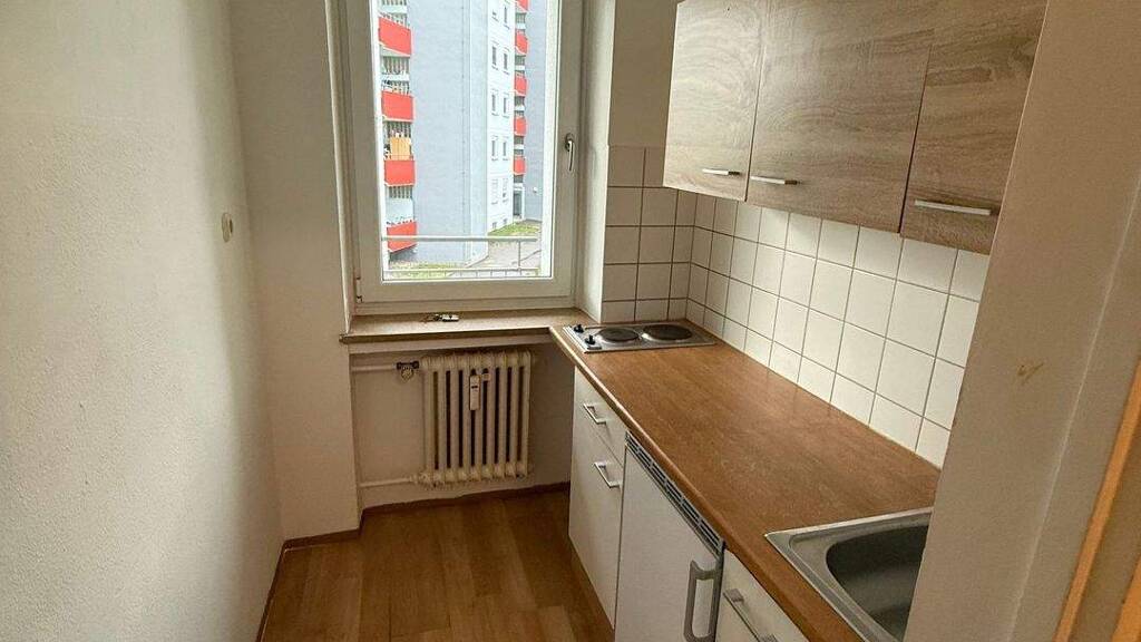 1-Zimmer-ohnung mit Küchenzeile. Die Wohnung hat eine Wohnfläche von 33,53 m², befindet sich im ersten Stock und besteht aus einem Zimmer, einer Küche und einem Badezimmer.
