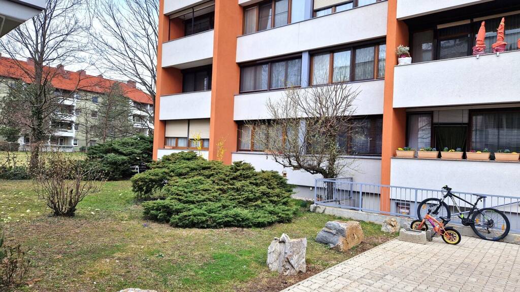 Vom zentralen Vorraum gelangt man in den Schlafbereich und in die Küche, die einen herrlichen Ausblick in den grünen und äußerst ruhigen Garten ermöglichen. Neben dem separaten WC befindet sich das geräumige Badezimmer mit einer Badewanne. Das großzügig geplante Wohnzimmer ist das Herzstück der Wohnung, es bietet viel Platz zum gemütlichen Zusammenkommen. Ein Schlafzimmer und ein weiteres Zimmer welches aktuell als Büro genutzt wird stehen Ihnen ebenfalls zur Verfügung.