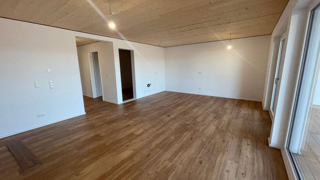 Vom Aufzug gelangen Sie barrierefrei über einen überdachten Laubengang zu Ihrer neuen Wohnung mit ca. 83 m². Das Highlight der Wohnung ist der ca. 30 m² große Wohn-Essbereich mit offener Küche und dem überdachten Balkon mit herrlicher Aussicht ins Grüne. Außerdem stehen Ihnen 1 Schlafzimmer, ein weiteres Zimmer, das als Büro genutzt werden kann, ein Bad, ein separates WC und ein praktischer Abstellraum zur Verfügung.