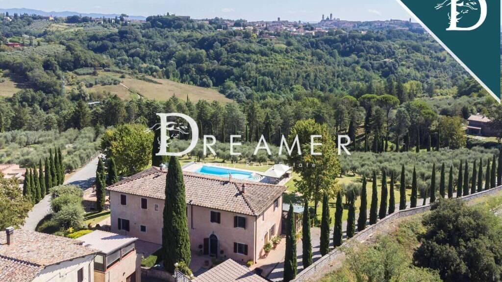 Renovated historic villa with panoramic swimming pool for sale in Siena. Just 5 minutes from the historic center and about 1 hour from Florence. The property of approximately 600 sqm presents 6 bedrooms and 7 bathrooms. Green countryside frames the property, which enjoys unique views of the hills and Siena. Ideal for a large family or hospitality business, the property is divided into two independent units, which can be joined to form a single environment.