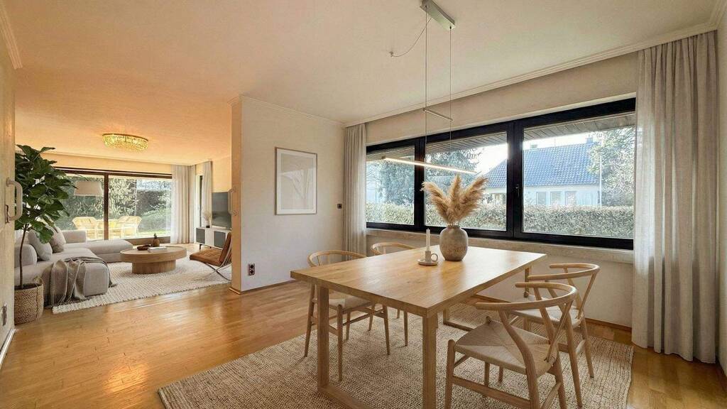 Die Immobilie überzeugt durch ihre beeindruckende Weitläufigkeit und einen durchdachten, modernen Grundriss. Der offen gestaltete Wohn- und Essbereich im Erdgeschoss bildet das Herzstück des Hauses und schafft eine sonnenverwöhnte und einladende Atmosphäre. Die angrenzende Küche fügt sich harmonisch in das Raumkonzept ein und ermöglicht kurze Wege sowie kommunikatives Wohnen. Der private Rückzugsbereich ist separiert und umfasst das gemütliche Schlafzimmer, einen Ankleidebereich sowie ein Tageslichtbad en Suite - eine Struktur, die heutigen Wohnansprüchen in besonderem Maße gerecht wird. Auch das Dachgeschoss überzeugt durch seine Großzügigkeit und Funktionalität - die drei geräumigen Zimmer eignen sich ideal als Kinder-, Arbeits- oder Gästezimmer. Ein weiteres Badezimmer mit Wanne und eine separate Toilette unterstreichen die durchdachte Raumaufteilung dieser Ebene, die durch einen praktischen Abstellraum und den Dachboden zusätzliche Staufläche bietet. Aufgrund der idealen Ausrichtung und der großflächigen Fensterfronten ist das Haus lichtdurchflutet. Die großzügige, teilüberdachte Terrasse sowie der geschützte Gartenbereich in Südwest-Ausrichtung bieten ein hohes Maß an Privatsphäre und laden zu entspannten Stunden im Freien ein. Die derzeitige Schwimmhalle eröffnet individuelle Gestaltungsmöglichkeiten - ob zum exklusiven Wellnessbereich oder zur Fitnesszone, dem zukünftigen Besitzer sind keine Grenzen gesetzt. Auch die Umnutzung zu einem Atelier ist denkbar. Weitere Ausstattungsmerkmale unterstreichen den besonderen Charakter der Immobilie - die Doppelgarage mit direktem Zugang zum Haus sorgt für Komfort im Alltag, während die praktischen Kellerräume vielfältige Nutz- und Stauflächen bereithalten. Der Hausverkauf richtet sich an Interessenten mit Weitblick, die das Potenzial eines großzügigen Einfamilienhauses in begehrter Lage erkennen und ihre eigenen Wohnträume verwirklichen möchten.