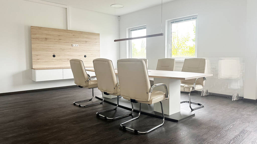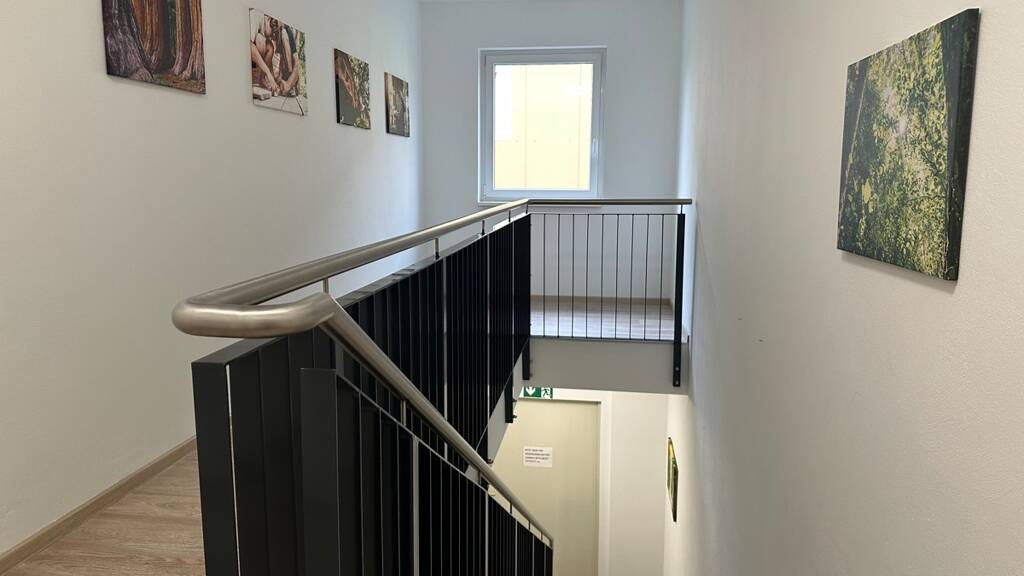 - helle Räume verteilt auf zwei Etagen - Küche - WC auf beiden Etagen - Umkleide - Küche - hochwertig möbliert - Parkplätze sowie Ladesäulen - Empfangsbereich - großzügiger Meetingraum