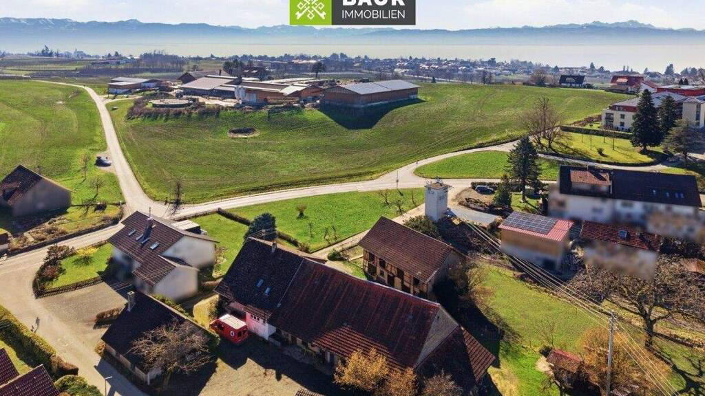 Das Grundstück verfügt über eine Fläche von rund 1.100 m² und ist derzeit mit einem älteren Wohnhaus sowie einem anschließenden Ökonomiegebäude bebaut. Die bestehende Hofstelle vermittelt bis heute ihren ursprünglichen, ländlichen Charakter und bietet gleichzeitig vielfältige Perspektiven für eine zukunftsorientierte Entwicklung. Durch die großzügige Grundstücksfläche und die gewachsene Struktur der Umgebung eröffnet sich hier die Möglichkeit, ein attraktives Neubauprojekt in gefragter Bodenseelage zu realisieren.