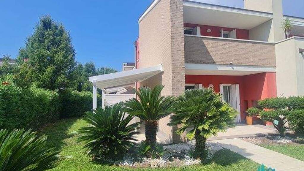 .Nur ca. 100?m vom Sandstrand entfernt .Zwei überdachte Privatparkplätze .Eckreihenhaus mit großzügigem, eingefriedetem Garten .Baujahr 2011, hochwertiger Bauzustand .Energieeffizienzklasse C .Zwei moderne Bäder, jeweils mit Fenster .Zwei Doppelschlafzimmer, separates Wohnzimmer mit Kochnische .Multisplit-Klimaanlage, unabhängige Heizung .Außendämmung, isolierte Fenster .Automatische Gartenbewässerung, Hauswirtschaftsraum / Waschküche .Möbliert mit viel Liebe zum Detail .Zwei überdachte Veranden mit Grillplatz und Essbereich im Freien .Terrasse im Obergeschoss mit Blick ins Grüne .Swimmingpool, Whirlpool, Spielplatz und Hausmeister in der Anlage .Vermietungsservice vor Ort, ideal für Kapitalanleger .Sehr ruhige Lage in einem der begehrtesten Stranddörfer Caorles Jährliche Anlagekosten ca 1900€ zzgl Strom
