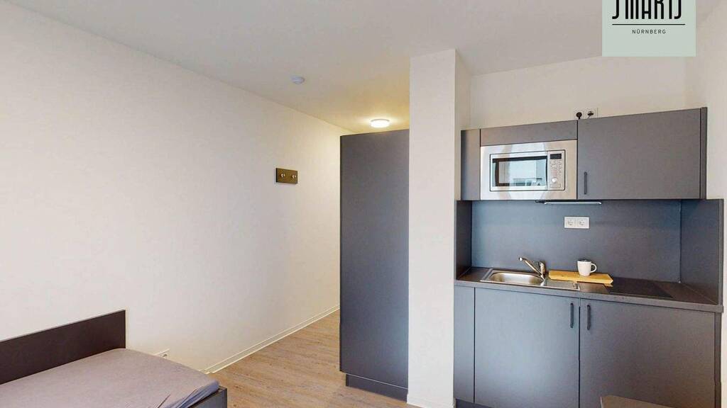 Das moderne Mikroapartment ist Teil der Apartmentanlage "SMARTS Nürnberg". Über 7 Stockwerke verteilt befinden sich 459 möblierte Apartments. Aufgrund der modernen Ausstattung und Möblierung können die neuen Bewohner des SMARTS Nürnberg unkompliziert mit dem Koffer einziehen. Wer Lust hat gleichgesinnte Mitbewohner zu treffen kann hierfür die Gemeinschaftslounge mit Zugang zur Dachterrasse nutzen. Zudem steht den Bewohnern ein Waschraum mit Waschmaschinen und Trocknern (kostenpflichtig) zur Verfügung.