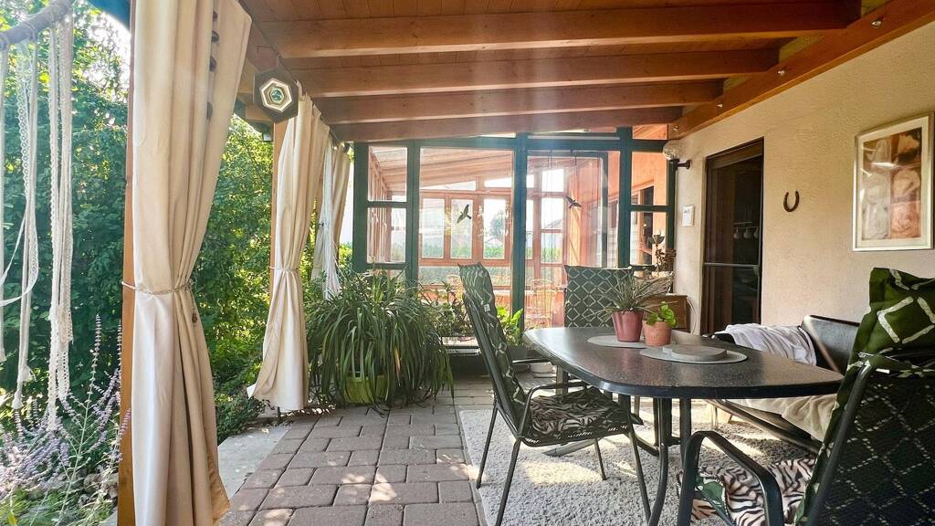Hinweis: Beim Wintergarten, der Ihnen auch in der kalten Jahreszeit ein angenehm helles und warmes Wohnklima schenkt, gab es in der Vergangenheit Herausforderungen mit dem Fundament. Hier kann perspektivisch eine Erneuerung bzw. Nachbearbeitung sinnvoll sein.