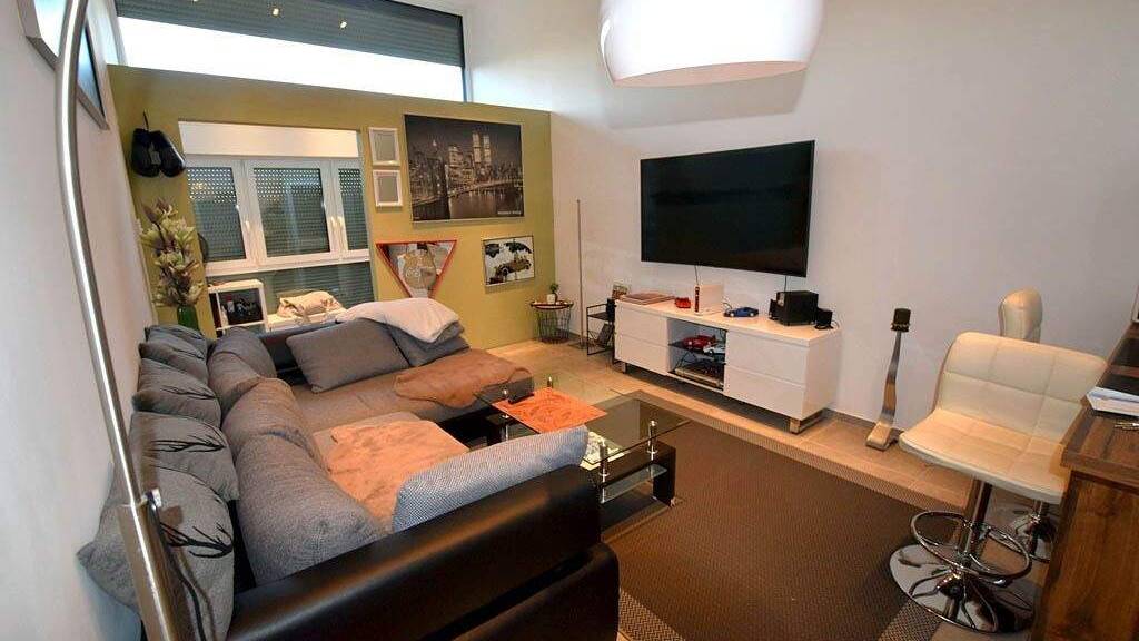 Diese moderne Wohnung im Loftstil liegt im Erdgeschoss eines gepflegten Mehrfamilienhauses in schöner Ortsrandlage von Münster-Altheim.