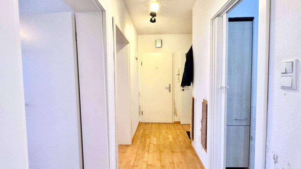 Bei der angebotenen Immobilie handelt es sich um eine gepflegte 3-Zimmer-Wohnung im dritten Obergeschoss eines Mehrfamilienhauses, das ca. im Jahr 1956 errichtet wurde uns insgesamt 28 Wohneinheiten umfasst. Die Wohnung überzeugt durch eine durchdachte Raumaufteilung, verteilt auf ca. 56 m2. Vom zentralen Flur aus sind alle Räume bequem erreichbar. Auf der linken Seite des Flurs befindet sich das Badezimmer, das mit einer Dusche sowie einem Fenster ausgestattet ist und dadurch über eine natürliche Belüftung verfügt. Direkt angrenzend liegt die Küche mit einer Einbauküche inklusive aller gängigen Elektrogeräte und zusätzlichem Stauraum. Am Ende des Flurs befinden sich zwei Zimmer, die sich flexibel als Schlaf-, Kinder- oder Arbeitszimmer nutzen lassen. Alle Räume sind hell und großzügig geschnitten. Auf der rechten Seite befindet sich ein weiteres Zimmer, das sich ideal als Wohnzimmer eignet, da von hier aus der Zugang zum Balkon möglich ist. Zur Wohnung gehört außerdem ein eigener Keller-raum.