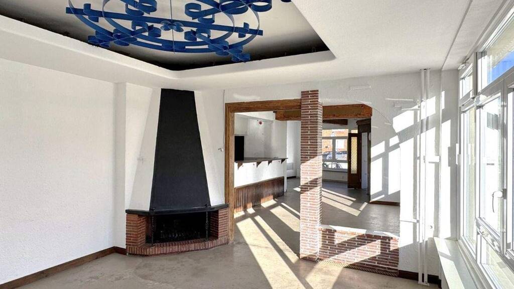 Ein weiteres Highlight ist das Kaminzimmer, was durch die offenen Backsteinpfeiler und die offene Fachwerkstruktur abgetrennt ist. Die abgehängte Decke ist mit Verzierungen versehen, mit indirekter Beleuchtung kannst du hier für noch mehr Atmosphäre sorgen. Ob du hier einen Gästebereich einrichtest oder es als beispielsweise mit Glaselementen versiehst und als Kundenbüro nutzt: Alles ist möglich.