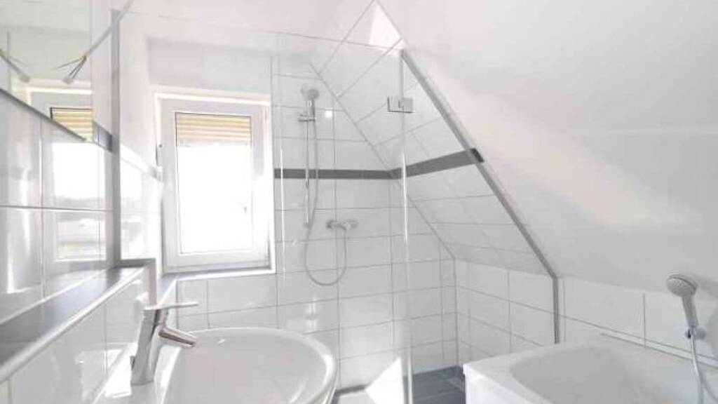 Die Doppelhaushälfte wurde 2016 komplett saniert/renoviert. Das EG betritt man über einen neu gefliesten Windfang. Von dort gelangt man in den Wohnbereich. Eine kleine Diele mit der Treppe zum OG führt weiter in einen Flur. Von dort geht es weiter zum WC, der Küche (Zugang v. Flur und Wohnzimmer) und in das Wohn-u. Esszimmer. Die Böden in Diele, Flur, WC und Küche wurden gefliest, der Boden des Wohn- u. Esszimmers ist mit Laminat belegt. Die Innentüren und Fenster sind neu und die Wände sind weiss gestrichen. Über die aufgearbeitete Holztreppe geht es in das DG. Dort befindet sich neben 2 Schlafräumen, dem Bad und dem WE noch ein Balkon. Die Schlafräume und die Diele sind mit Laminat versehen. Bad und WC sind gelfiest. Auch die Badausstattung wurde 2016 erneuert Dort finden Sie neben einem Waschbecken und einer Badewanne eine begehbare Dusche. Im ganzen Haus wurden die Außenwände von Innen im Zuge des Trockenbaus isoliert. Die Fassade wurde 2024 erneuert. Die neue Gasheizung befindet sich im Keller, in der Waschküche.