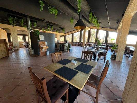 Das Restaurant ist teilweise eingerichtet. Die wesentliche Kücheneinrichtung wurde erst kürzlich angeschafft. Die Einrichtung kann gemietet oder ganz oder teilweise erworben werden. Mitten im Gastraum befindet sich ein Steinbackofen. Die Verbesserung oder Ergänzung der Einrichtung ist Sache des Pächters.
