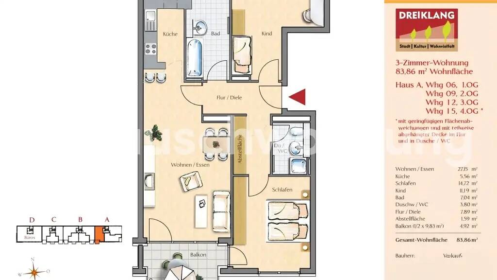 Ausstattung und Highlights: . 3 helle und gut geschnittene Zimmer . 2 großzügige Badezimmer - Ein Bad mit Dusche und Bidet - Ein Bad mit Badewanne und ausreichend Platz zum Wäschetrocknen, fast wie ein kleiner Hauswirtschaftsraum . Moderne Einbauküche mit durchdachtem Raumkonzept und viel Stauraum . Integrierter Einbauschrank im Flur, der zur Wohnung gehört . Waschmaschinenanschluss in der Wohnung . Fußbodenheizung in allen Räumen . Handtuchheizkörper in beiden Bädern . Großer Süd Balkon mit viel Sonne . Kellerabteil . Tiefgaragenstellplatz