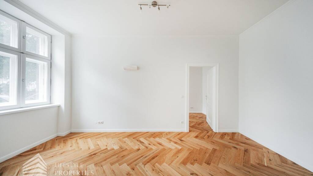 In der eben sanierten Stilaltbau-Wohnung lässt sich eine gediegene Ausstattung mit einer erlesenen Auswahl an Materialien genießen. Die Wohnung wurde mit aufwendig verlegtem Fischgrät-Eichenparkett und mit stilvollen Kassettentüren ausgestattet. Eleganter Deckenstuck und feine Vertäfelungen unterstreichen den einzigartigen Alt-Wien-Charakter. Traditionelle Holzkastenfenster, die durch moderne Isolierverglasung aufgewertet wurden zieren straßenseitig die Fassade. Das moderne Bad begeistert dank Markensanitärprodukten, einer Einbauwanne und einer Dusche mit erstklassiger Qualität, Komfort und Design.