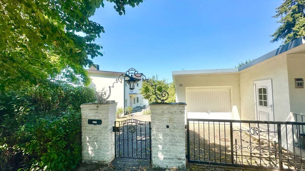 Eine Architektur-Ikone in einzigartiger Hanglage: Das sanft geschwungene Gebäude öffnet sich mit einer fast vollständig verglasten Fassade zur Talseite und inszeniert aus nahezu jedem Raum einen spektakulären Panoramablick. Im Obergeschoss krönt eine weitläufige Dachterrasse das Anwesen – ein Refugium unter freiem Himmel, das an das Sonnendeck eines eleganten Passagierschiffs erinnert. Inspiriert von der Legende eines Kapitäns als Bauherrn, verbinden sich hier maritime Anklänge wie die runde Luke in der Küche mit der geschmeidigen Linienführung des Baukörpers zu einer Komposition von zeitloser Eleganz und unverwechselbarem Charakter.