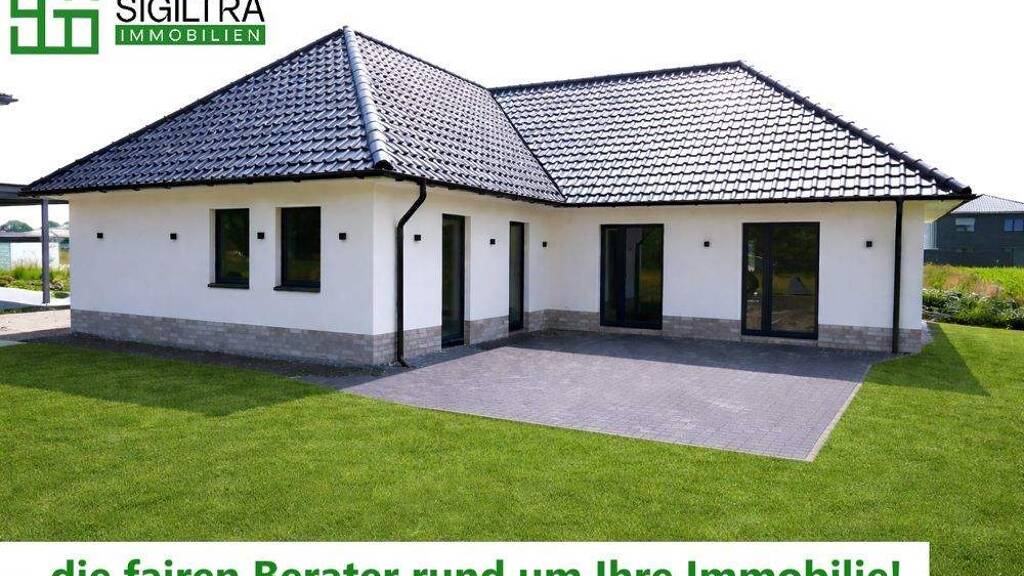Dieser exklusive Neubau-Winkel-Bungalow vereint moderne, energieeffiziente Architektur mit einem außergewöhnlich komfortablen Wohnkonzept. Klare Linien, hochwertige Materialien und eine durchdachte Raumgestaltung verleihen dem Haus eine zeitlose Eleganz. Errichtet in einem modernen Neubaugebiet von Fürstenau, richtet sich diese Immobilie an Käufer mit Anspruch an Qualität, Komfort und langfristige Werthaltigkeit. Bereits der großzügige, lichtdurchflutete Eingangsbereich vermittelt ein Gefühl von Ankommen und Wertigkeit. Auf ca. 155 m² Wohnfläche entfaltet sich ein außergewöhnlich gelungener Grundriss, der vollständig auf ebenerdiges Wohnen ausgelegt ist. Der Wohn-, Ess- und Kochbereich bildet den Mittelpunkt des Hauses. Offen, weitläufig und repräsentativ gestaltet, überzeugt dieser Bereich durch klare Sichtachsen und eine beeindruckende Lichtwirkung. Nahezu überall sorgen bodentiefe Fenster für eine helle, freundliche Atmosphäre. Sämtliche bodentiefen Fenster lassen sich öffnen und ermöglichen den direkten Zugang auf die Terrasse und in den Garten. Innen- und Außenraum verschmelzen zu einer Einheit und schaffen ein Wohngefühl von Offenheit und Großzügigkeit. Breite, ca. 1 Meter große Türen sowie eine ruhige, klare Raumstruktur sorgen für hohen Wohnkomfort. Drei großzügige Schlafzimmer bieten vielseitige Nutzungsmöglichkeiten. Besonders hervorzuheben ist der private Schlafbereich mit eigenem Bad und ebenerdiger Dusche, der als komfortabler Rückzugsort mit hoher Privatsphäre überzeugt. Ein weiteres hochwertiges Duschbad sowie ein separates Gäste-WC ergänzen das Raumangebot. Der großzügige Hauswirtschaftsraum mit direktem Zugang zum massiv gemauerten Carport unterstreicht die durchdachte Planung. Das ca. 715 m² große Grundstück wird vollständig fertiggestellt übergeben - inklusive Terrasse, gepflasterter Hofflächen, Hausumrandung und angelegtem Garten. Eine Ausbaureserve im Dachboden bietet zusätzliche Perspektiven. Der Erwerb erfolgt für den Käufer provisionsfrei.
