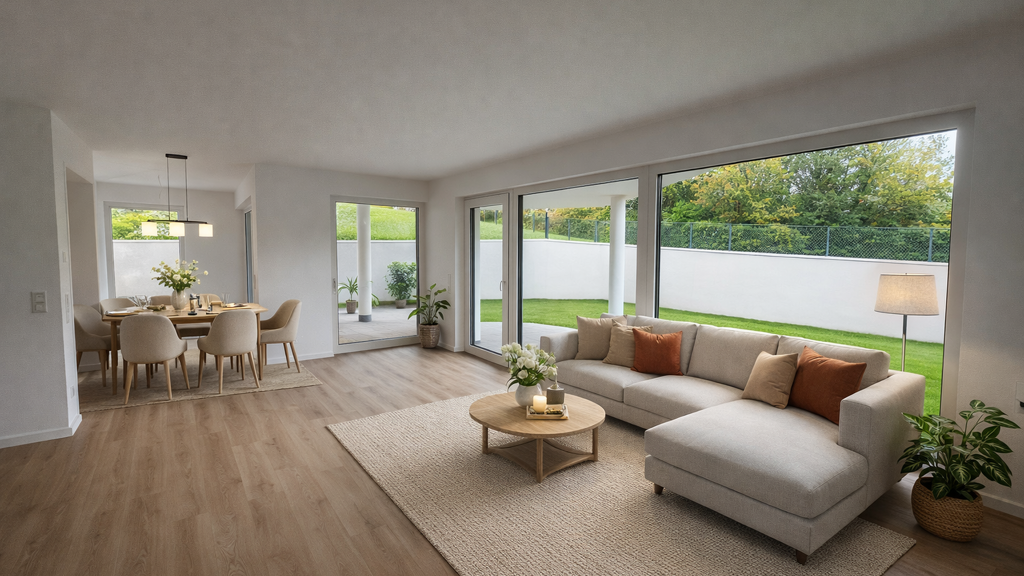 In einer ruhigen und dennoch zentralen Lage von Eppstein entsteht diese attraktive Neubauwohnung, die modernen Wohnkomfort mit stilvollem Ambiente verbindet. Die groĂźzĂĽgige 4-Zimmer-Wohnung ĂĽberzeugt durch ihre helle und offene Raumgestaltung sowie durch hochwertige Ausstattungsdetails. Ein besonderes Highlight ist der lichtdurchflutete Wintergarten, der an das Wohnzimmer angrenzt und einen herrlichen Blick in den privaten Garten bietet - perfekt fĂĽr entspannte Stunden oder gesellige Abende.