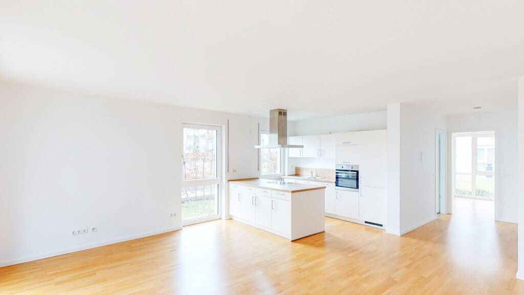 Die hier angebotene Wohnung verfügt über einen hellen Wohnbereich mit offener Küche (ohne EBK) der großzügige Flächen zum Kochen, Essen und Entspannen bietet. Die familienfreundliche 4-Zimmer Wohnung bietet weiterhin drei gemütliche Schlafzimmer sowie zwei moderne Badezimmer mit ebenerdiger Dusche bzw. Badewanne. Ein Highlight sind ebenso die beiden Balkone, welche durch den Wohnbereich sowie von zwei Schlafzimmern aus erreicht werden können. Auch für einen Abstellraum ist gesorgt.