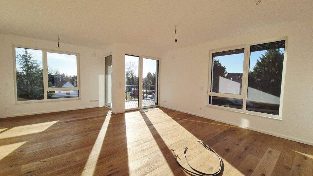 Diese ca. 108,78 m² große Neubauwohnung im 2. Obergeschoss vereint modernen Komfort mit privater Naturidylle. Es erwarten Sie ein luftiger Wohn-, Koch- und Essbereich - das perfekte Ambiente für gesellige Abende mit Freunden oder für gemütliche Familientage. Drei wohlproportionierte Schlafzimmer bieten Platz für die ganze Familie, lassen sich aber ebenso ideal als Homeoffice oder Gästebereich nutzen. Der besondere Clou: Eine private Outdoor-Oase mit sonnigem Balkon, auf dem Sie morgens das Vogelgezwitscher genießen und abends in entspannter Atmosphäre den Tag ausklingen lassen können. Für den Alltagskomfort sorgt das moderne Badezimmer mit Wanne und Walk-In Dusche, dazu ein praktisches Gäste-WC mit Ausstattung von Villeroy & Boch. Und weil smarter Stauraum Gold wert ist, gibt's gleich zwei praktische Lösungen: Ein Abstellraum in der Wohnung und ein eigenes Kellerabteil - bequem erreichbar mit dem Aufzug. Die Ausstattung ist aus hochwertigen Designlinien bekannter Marken. Hinzu kommen Echtholzparkett, Fußbodenheizung und schallisolierte Fenster mit elektrischen Rollläden. Energieeffizienzklasse A+ bringt nicht nur gutes Gewissen, sondern auch langfristig entspannte Nebenkosten. Wenn es noch ein Parkplatz sein darf, hier haben Sie die Wahl zwischen einem Stellplatz für 12.500EUR oder einem Carport für 20.000EUR.