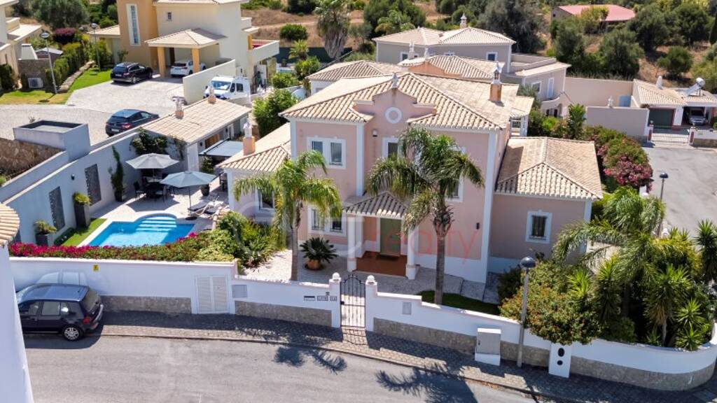 Wir präsentieren diese atemberaubende Villa in einer der prestigeträchtigsten Gegenden von Lagos - eine wahre Oase des Komforts, der Eleganz und der Ruhe. Dieses Anwesen vereint zeitgenössische Architektur mit hochwertiger Ausstattung und wurde sorgfältig gestaltet, um ein unvergleichliches Wohnerlebnis zu bieten. Mit großzügigen Innenräumen und einem harmonischen Grundriss bietet die Villa helle Schlafzimmer mit eigenem Bad, ein geräumiges Wohnzimmer mit Kamin und eine voll ausgestattete moderne Küche - ideal für Familienmomente oder die Bewirtung von Gästen. Im Außenbereich tauchen Sie ein in die Schönheit der Algarve: ein wunderschön angelegter Garten, ein privater Pool mit kristallklarem Wasser und mehrere Terrassen, auf denen der Sonnenuntergang den Himmel in goldene Töne taucht. Der freie Blick auf den Golfplatz und die Nähe zu den berühmtesten Stränden der Region verleihen diesem Haus einen einzigartigen Charme. Nur wenige Minuten vom historischen Zentrum von Lagos, den Golfplätzen und dem Yachthafen entfernt bietet diese Villa die perfekte Balance zwischen Privatsphäre und Komfort. Entdecken Sie die Freude am Leben an einem Ort, an dem jedes Detail auf Lebensqualität, Komfort und Schönheit ausgelegt ist. Ideal als Dauerwohnsitz, Ferienhaus oder hochwertige Kapitalanlage. Lagos, Algarve - wo Ihr neues Kapitel beginnt. Energiekategorie: D #ref:M759