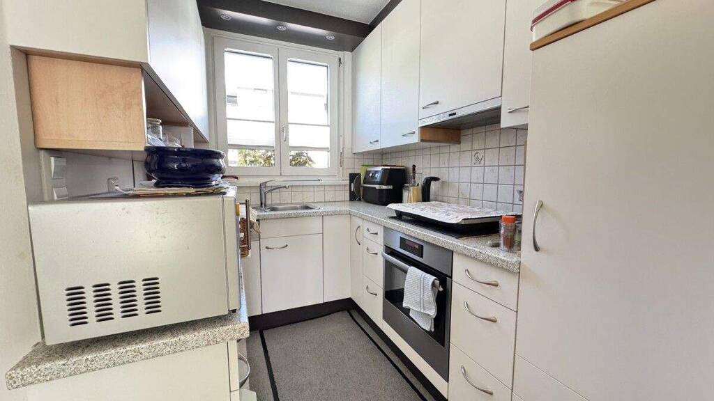Das obere Stockwerk hat mit der charmanten Dachschräge ein ganz besonderes Flair. Hier lässt es sich hervorragend relaxen - ob beim Lesen oder beim Arbeiten im Homeoffice. Das Badezimmer ist kompakt, aber gut durchdacht - mit Dusche, Waschbecken und WC, sowie einem praktischen Waschmaschinenanschluss. Ein Dachfenster sorgt für frische Luft und extra Licht. Abgerundet wird die Wohnung durch einen Tiefgaragenstellplatz und ein eigenes Kellerabteil - praktisch, wenn's um Stauraum geht.