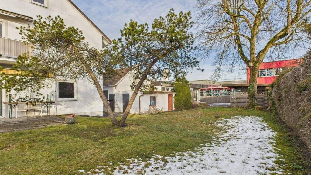 Altbestand: Auf dem Grundstück befindet sich noch ein Altbestand, bestehend aus zwei Wohnhäusern und einer Gewerbefläche mit Garagen.