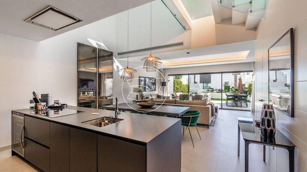 Neubau, Klimaanlage, komplett ausgestattet, Küche ausgestattet, Waschküche, offener Kamin, Jacuzzi, Sauna, Keller, Gästezimmer, Abstellraum, Fitnessraum, Solarium, Sicherheitseingang, Doppelverglasung, Wohnzimmer, Grill, 24Std Sicherheitsdienst, Gästetoilette, private Terrasse, Küche ausgestattet, Hallenschwimmbad, beheiztes Schwimmbad, Fußbodenheizung im gesamten Haus, Waschküche, überdachte Terrasse, elektrische Rollläden, Einbauschränke, geschlossene Wohnanlage, offene Terrasse, Thermalbad - SPA, türkisches Bad, Überwachungskameras