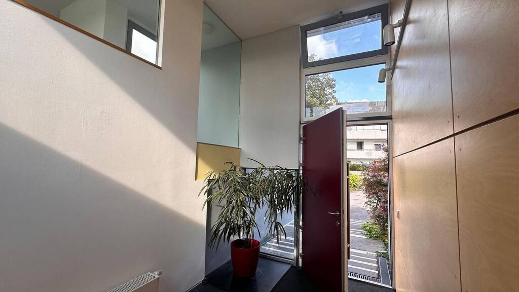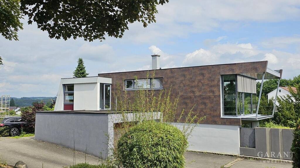 Dieses moderne Wohn-und Bürohaus überzeugt durch klare Linien und hochwertige Ausstattung mit Terrassen und schön angelegtem Garten. Das Gebäude besteht aus drei Einheiten mit separaten ebenerdigen Zugängen, die bei Bedarf auch zusammengelegt werden können. Der Hauptteil, mit Terrasse, wird derzeit als Büro genutzt. Die Wohnungen verfügen jeweils über eine Pantryküche mit allen notwendigen Geräten, Natursteinbäder mit Tageslicht sowie eine komfortable Fußbodenheizung.