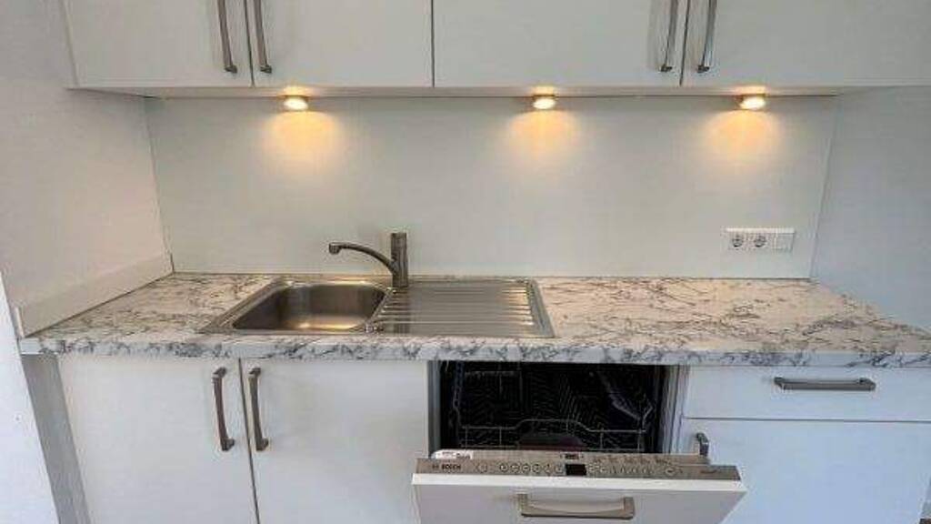 Küche mit Komfort: Die moderne Einbauküche lässt keine Wünsche offen und ist vollständig ausgestattet mit: . Einbaukühlschrank . Herd und Backofen . Spülmaschine . Reichlich Stauraum in hochwertigen Schränken und Schubladen